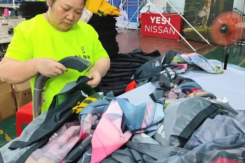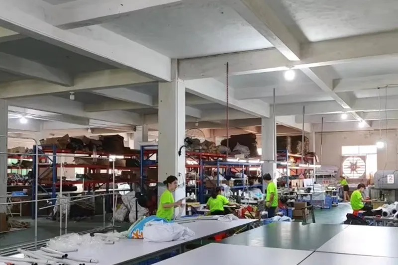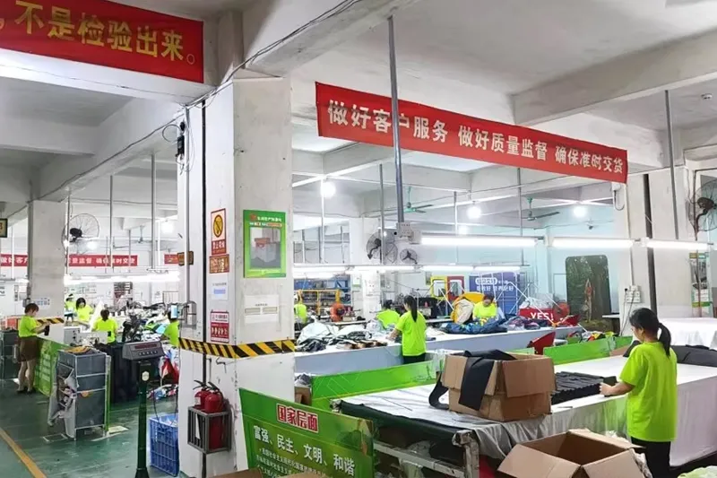 Мастерская 10, 800 кв. м, 130+ сотрудников, 20+ команда дизайнеров, 5 000 000 долларов США, 50+ комплектов станков для обработки металла, 100+ комплектов тканей и печатных машин, 1000000+ комплектов годового количества экспорта, 90% дублирующих заказов клиентов.
